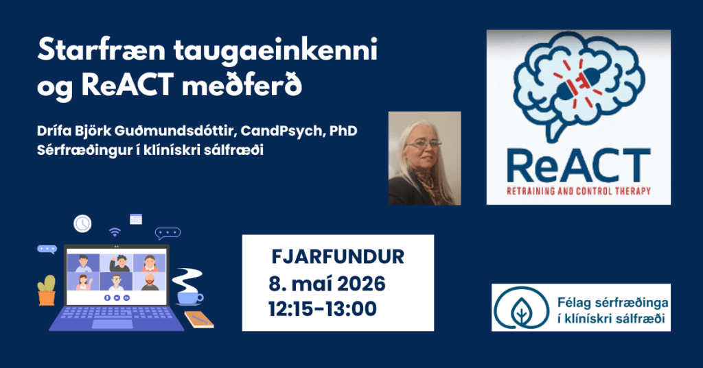 Næsti félagsfundur verður fjarfundur á TEAMS 22. mars kl. 12:15 til 13:00. Félagi okkar í FSKS Rúnar Helgi Andrason sérfræðingur í klínískri sálfræði mun kynna fyrir okkur ACT-meðferð.